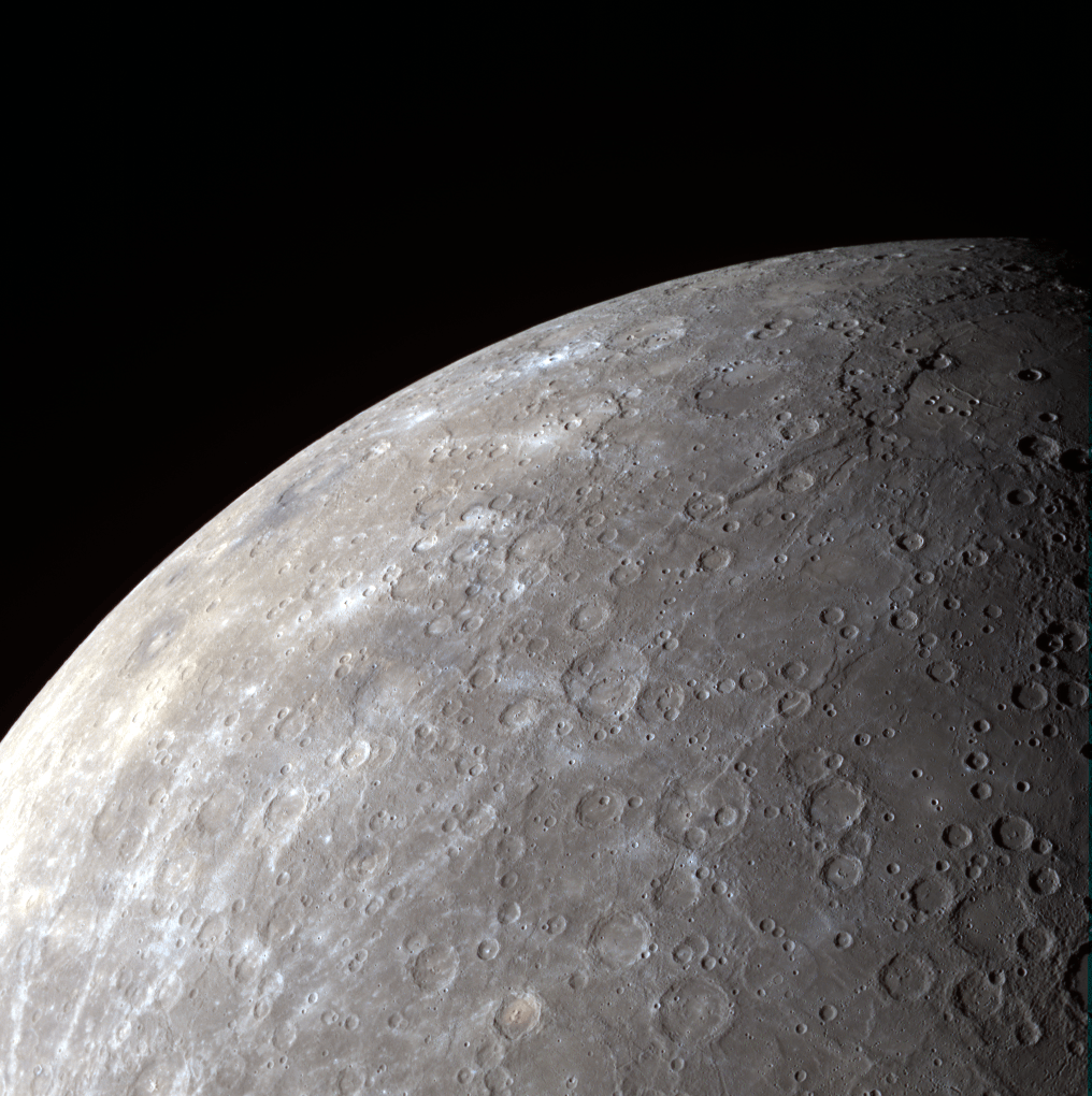 The view of Mercury's southern hemisphere above features some notable craters as well: the relatively youthful 444-mile (715-km) -wide
