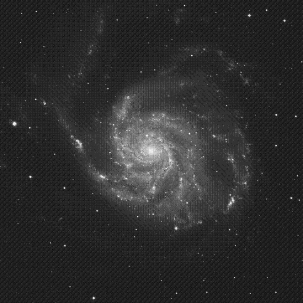 But there's still plenty of mystery left to discover in Messier 101. "After a review of the discovery of external galaxies and the early classification of these enormous aggregates of stars into visually recognizable types, a new classification scheme is suggested based on a measurable physical quantity, the luminosity of the spheroidal component. It is argued that the new one-parameter scheme may correlate well both with existing descriptive labels and with underlying physical reality. Two particular problems in extragalactic research are isolated as currently most fundamental. A significant fraction of the energy emitted by active galaxies (approximately 1% of all galaxies) is emitted by very small central regions largely in parts of the spectrum (microwave, infrared, ultraviolet and x-ray wavelengths) that were previously inaccessible to observation." says J.P. Ostricker.