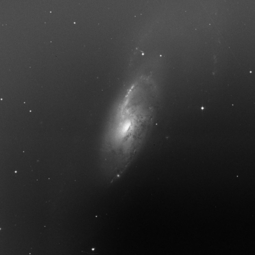 M106 was discovered by Pierre Mechain in July 1781. In his personal letters to Bernouli he writes: "In July 1781 I found another nebula close to the Great Bear [Ursa Major] near the star No. 3 of the Hunting Dogs [Canes Venatici] and 1 deg more south, I estimate its right ascension 181d 40' and its northern declination about 49d. I will be going to determine the more accurate position of this one shortly." It was later independently rediscovered by William Herschel on March 9, 1788 who pens in his notes: "Very brilliant. Bright Nucleus. With faint milky branches north preceding and south following. 15' long and to the south following running into very faint nebulosity extending a great way. The nucleus is not round."
