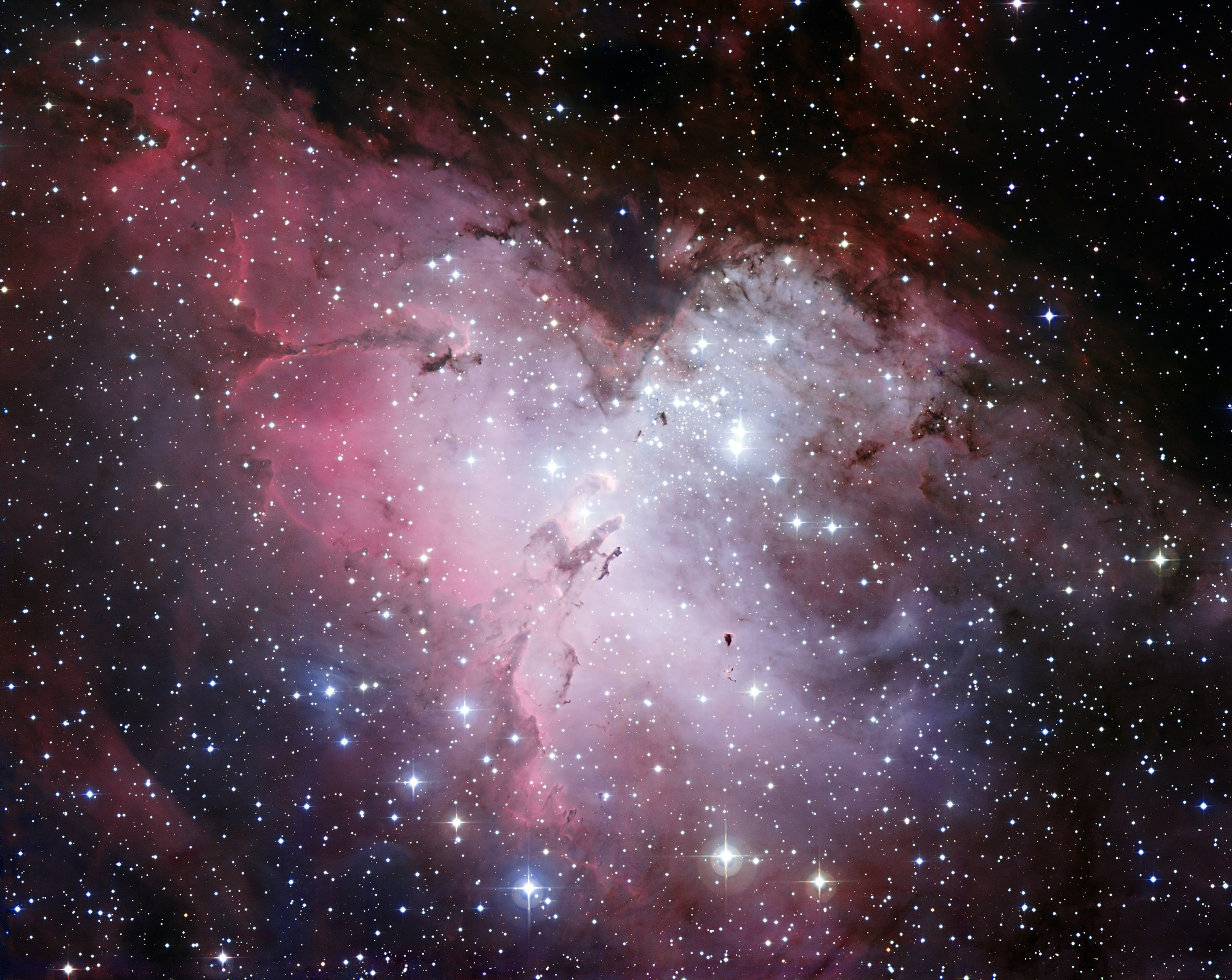 Wide-field IR view of the Eagle Nebula, showing its Stars, the Pillars, and the Eagle's EGGs. Credit: ESO