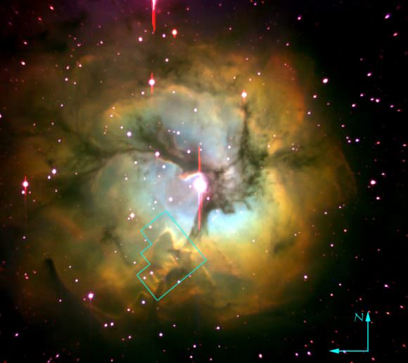One of these objects is the Trifid Nebula (aka. Messier 20, NGC 6514), a star-forming region of ionized gas located in the