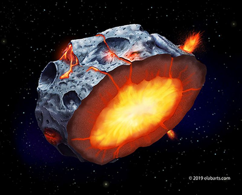 In these metallic asteroids, the solidified crust would have compressed the buoyant, molten core. That would have kept the molten iron locked into the core. But over time, there would have been changes in the crust.