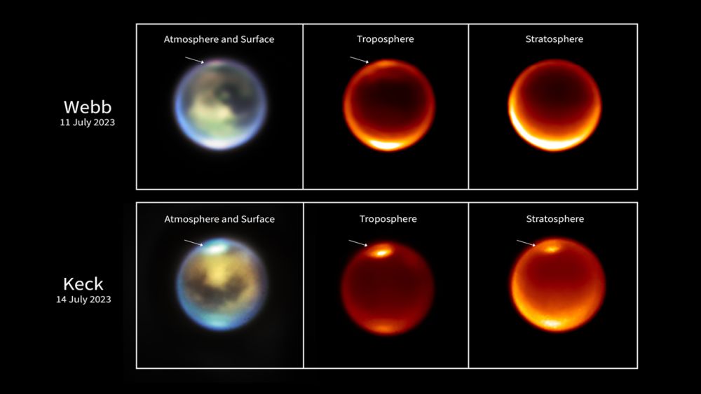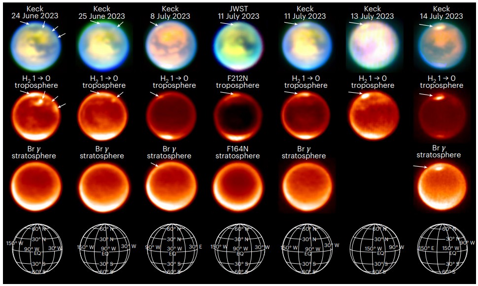 They used the JWST's Near-Infrared Spectrograph to detect CO and CO2 emission bands and measured these species over a wide range of altitudes. They also used the infrared cameras on the JWST and the Keck II to image tropospheric clouds over the northern hemisphere as they evolved by altitude. Scientists have observed clouds rising convectively over the southern hemisphere, but never over the northern hemisphere.