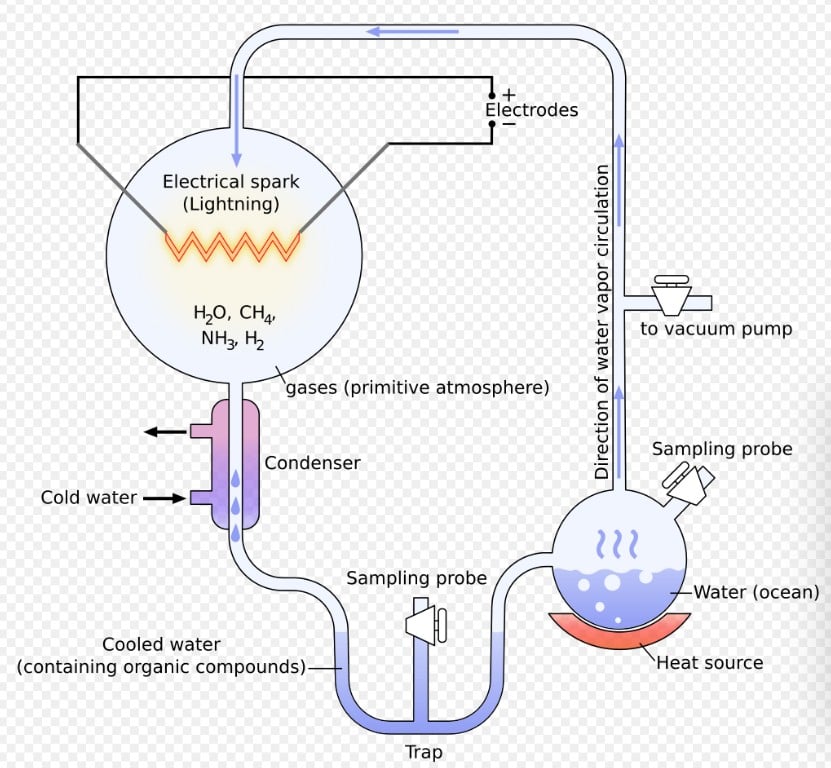 This schematic shows how the original Miller-Urey experiment worked. Image Credit: By W3C-validity not checked. - Own work from Image:MUexperiment.png by Carny, CC BY-SA 3.0,https://commons.wikimedia.org/w/index.php?curid=3500500