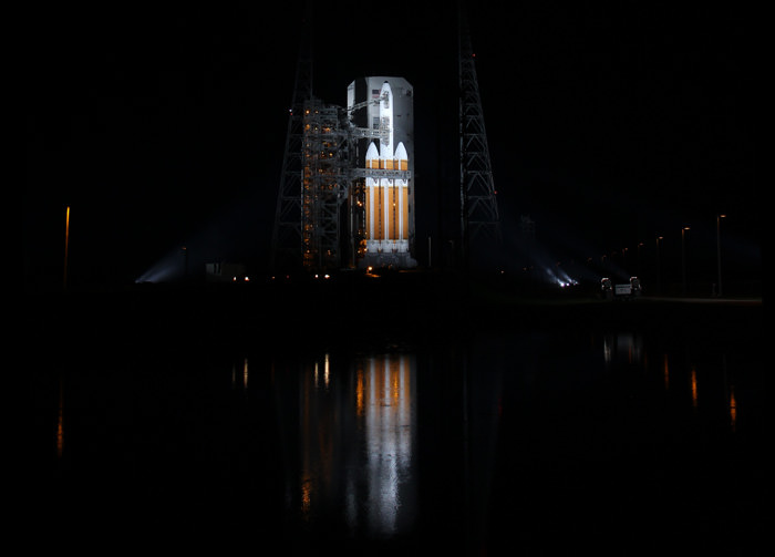 Image caption: The Delta 4 Heavy rocket and Super secret payload stand poised for launch at 6:13 a.m. EDT on June 29, 2012 following retraction of the mobile service tower. Credit: Ken Kremer