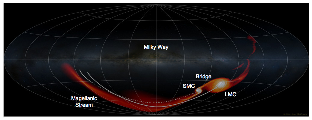 The team postulated that the Magellanic Stream and Bridge are similar to bridge and tail structures seen in other interacting galaxies and, importantly, formed before the Clouds were captured by the Milky Way.