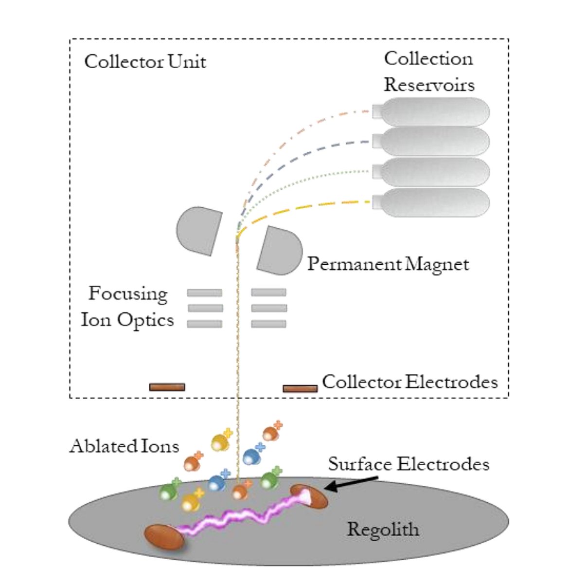 That mining process uses a novel technique called ablative arc mining. In this iteration, arc mining involves creating an electric arc across two electrodes that would break any material it came into contact with into ionized particles. These ionized particles are then guided, via a series of electric fields, into capture chambers where other ions of a similar type are housed.