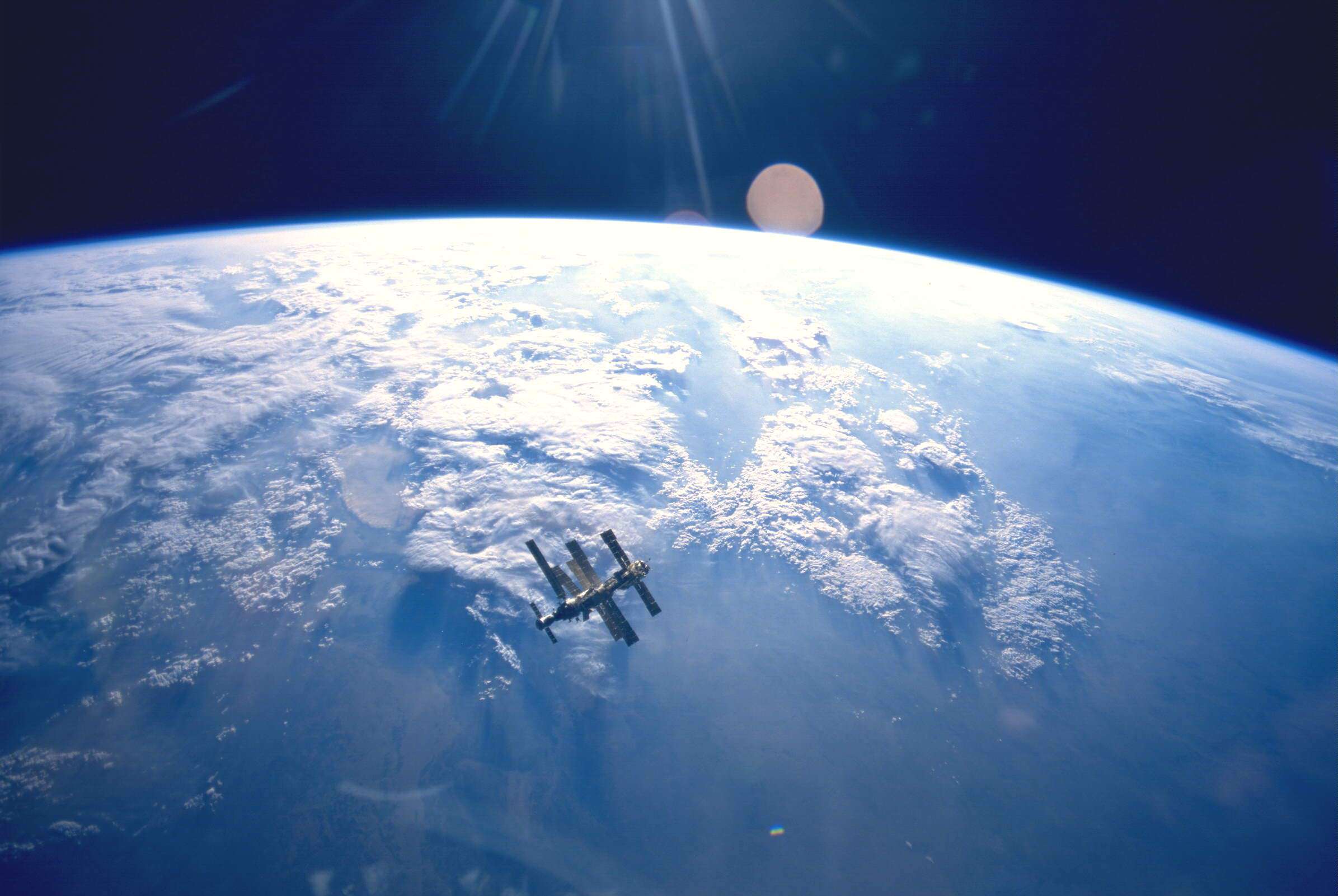 The Mir Space Station and Earth limb observed from the Orbiter Endeavour during NASA's STS-89 mission in 1998. Credit: NASA