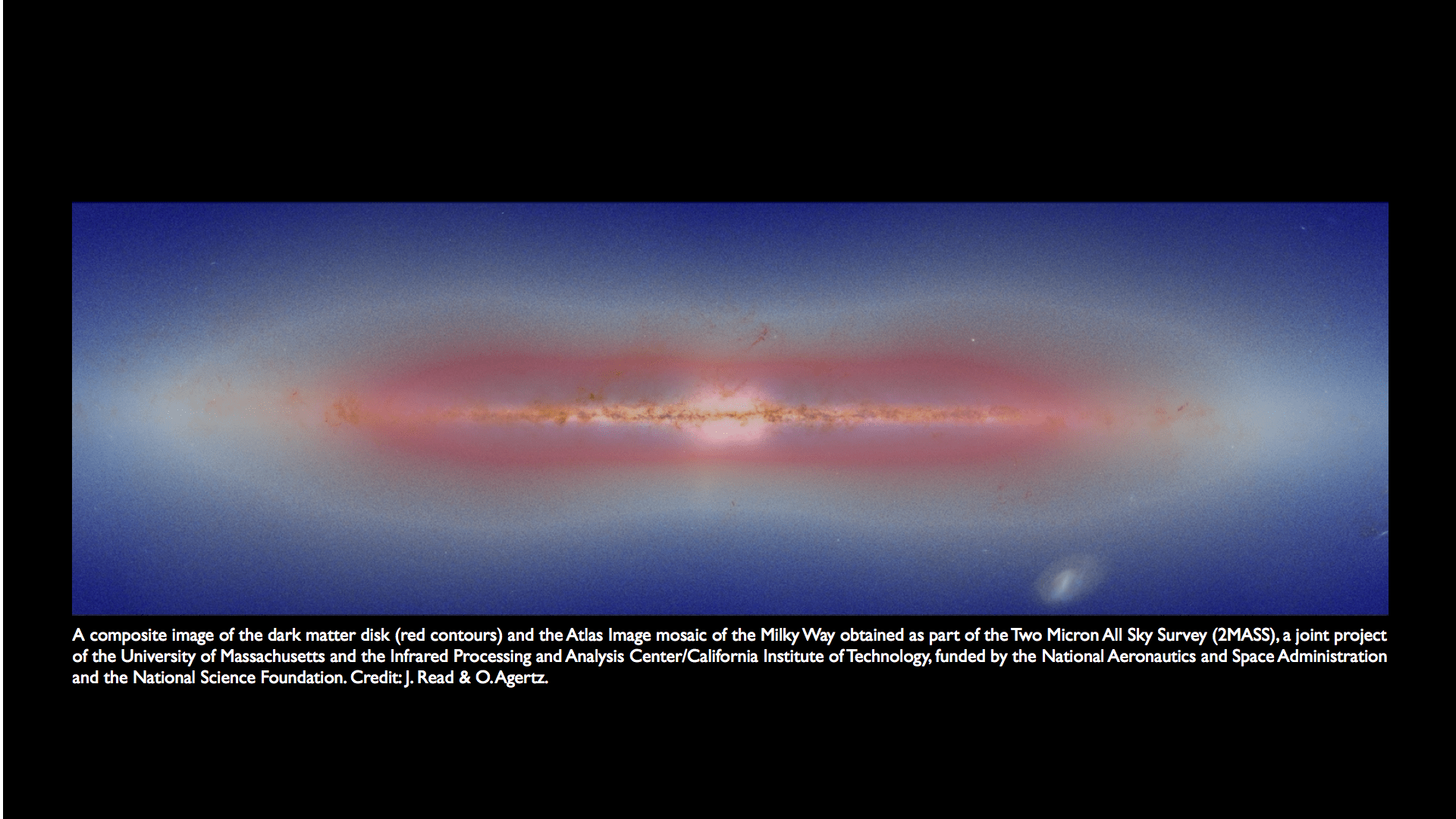 Although dark matter is inherently difficult to observe, an understanding of its properties (even if not its nature) allows astronomers to predict where its effects should be felt. The current understanding is that dark matter helped form the first galaxies by providing gravitational scaffolding in the early universe. These galaxies were small and collapsed to form the larger galaxies we see today. As galaxies grew large enough to shred incoming satellites and their dark matter, much of the dark mattershould have been deposited in a flat structurein spiral galaxies which would allow such galaxies to form dark components similar to the disk and halo. However, a new study aimed at detecting the Milky Way's dark disk have come up empty.