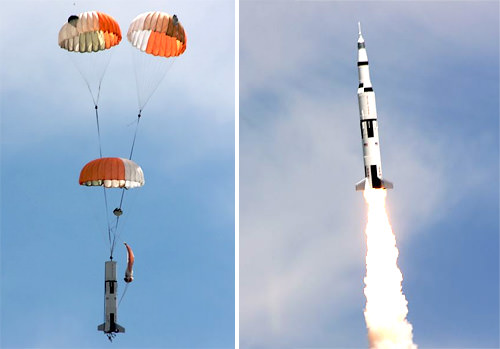 A world record model rocket launch attempt on Saturday lifted off -- and landed -- successfully. Steve Eves worked for two years building the rocket, a 36-foot (10.9-meter) tall, 1:10 scale Saturn V model rocket. Eves now holds the world record for the largest amateur rocket to ever be launched. The picture-perfect launch took place on a farmer's field near Price, Maryland, about 50 miles (80 km) east of Baltimore, delighting those in attendance. The main body of the rocket even landed upright. See the video below.