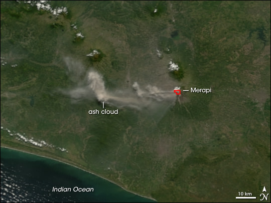 [/caption] Mount Merapi is an active volcano in Indonesia, on the island of Java near the city of Yogyakarta. The volcano is so active that smoke can be seen coming out of the peak almost every day of the year. Mount Merapi has been erupting regularly since 1548.