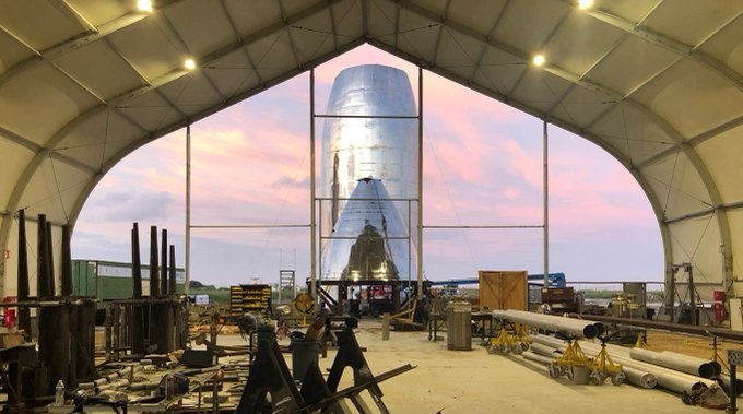 In the second image, Musk showed a section of the prototype Starship being lowered onto the main body. Playing on the saucer-like appearance of the section and the little dome on top (not to mention the way the Boca Chica facility has drawn comparisons to a certain secret military testing facility in Nevada) he captioned this tweet with the words "Area 51 of Area 51".