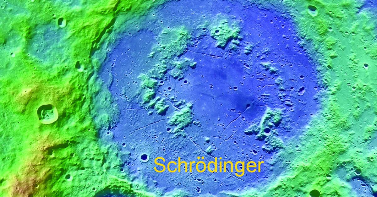 Image of Schrodinger's basin on the far side of the moon, where the new missions will land