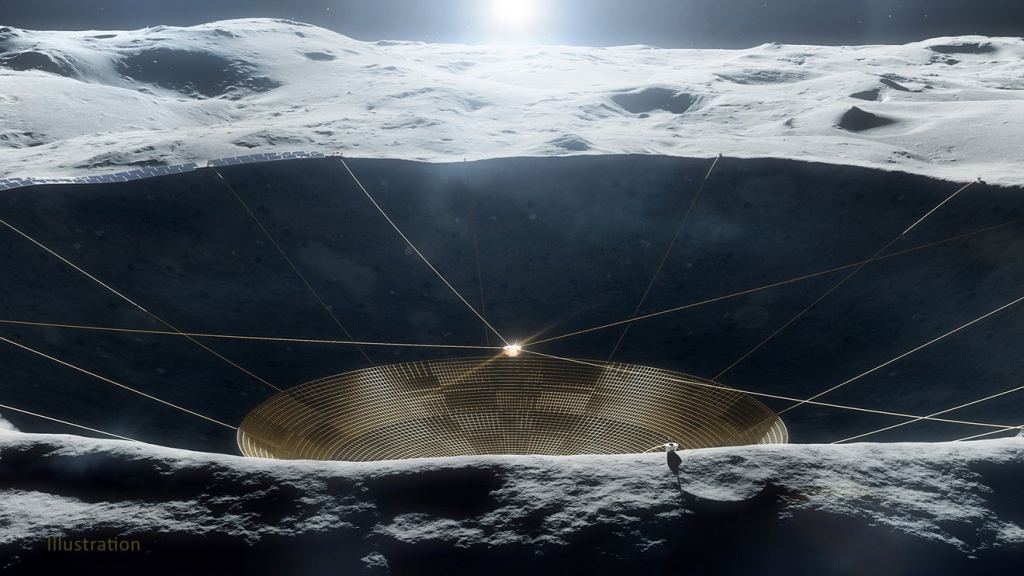 In order to complete a 1km wide telescope, thousands of reflecting panels would have to be created on Earth, launched into space, and then placed precisely where they need to go. That's a lot of launches and a lot of weight, and it made the entire concept of a lunar radio telescope untenable.