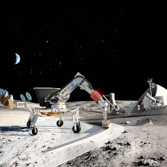 The Contour Crafting Simulation Plan for Lunar Settlement Infrastructure Build-Up, a NIAC-supported concept. Rendering courtesy of Behnaz Farahi and Connor Wingfield