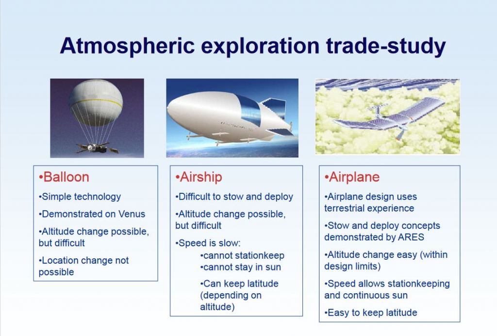 "The middle atmosphere of Venus is nearly the most unknown region of the planet, and simply flying an airplane in this region could lead to some interesting science. Aircraft have the advantage that they have complete control over flight; you go where you want to go, not where the wind sends you. For the sample return, the airplane gives us the option to do a controlled rendezvous with the return rocket."