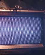 The HiPEP thruster operates by ionizing xenon gas with microwaves. At the rear of the engine is a pair of rectangular metal grids that are charged with 6,000 volts of electric potential. The force of this electric field exerts a strong electrostatic pull on the xenon ions, accelerating them and producing the thrust that propels the spacecraft. The rectangular shape, a departure from the cylindrical ion thrusters used before, was designed to allow for an increase in engine power and performance by means of stretching the engine. The use of microwaves should provide much longer life and ion-production capability compared to current state-of-the-art technologies.