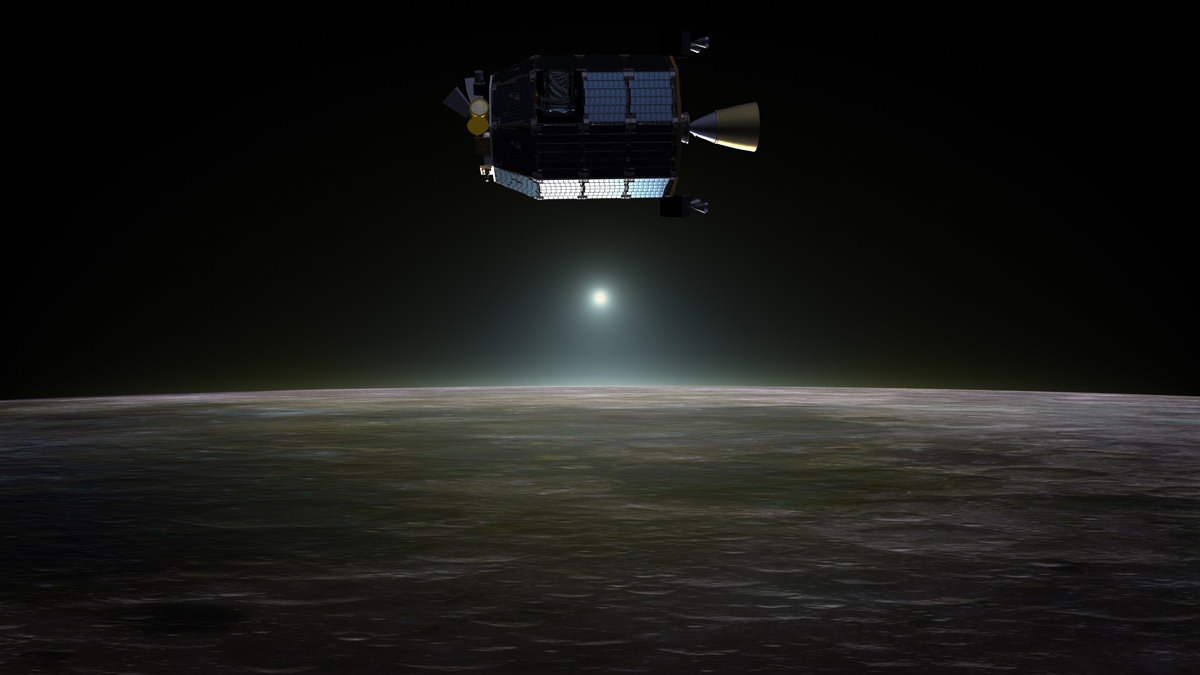By circling in this very low altitude equatorial orbit, the washing machine sized probe will make frequent passes crossing from lunar day to lunar night enabling it to precisely measure changes and processes occurring within the moon's tenuous atmosphere while simultaneously sniffing for uplifted lunar dust in the lunar sky.