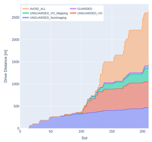 Perseverance is the first Mars rover to drive the first 50% of its distance autonomously, a feat it accomplished early in its mission after 210 sols. The rover's flexibility and multiple operating modes, especially AutoNav, helped the rover achieve this record. Its success continues.