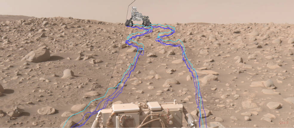 Planning the route is a detailed activity based on satellite images of the rover's region of operation, the floor of Jezero Crater. Once operators choose the destination, it's up to AutoNav to find the best route between obstacles, including boulders and steep, unstable slopes. And AutoNav is proving it's up to the task.