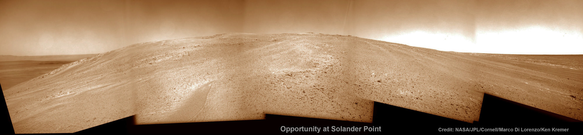 This past spring and summer, Opportunity drove several months from the Cape York rim segment to Solander Point.