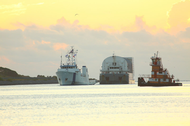 The External Tank traveled from NASA's Michoud Facility located in Louisiana to NASA's Kennedy Space Center across the Gulf of Mexico. The trip takes about 5 days and some 900 miles. The Pegasus reached the turn basin near the massive Vehicle Assembly Building (VAB) the day prior. The day was viewed as one of reflection for those that have worked to see that the tanks arrive safely at KSC.
