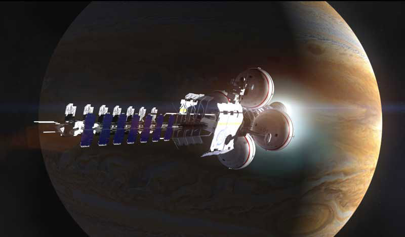 The Icarus Starfinder, shown leaving the Solar system. Ships like this may be equipped with a pulsar navigation system. Credit: Adrian Mann[/caption]