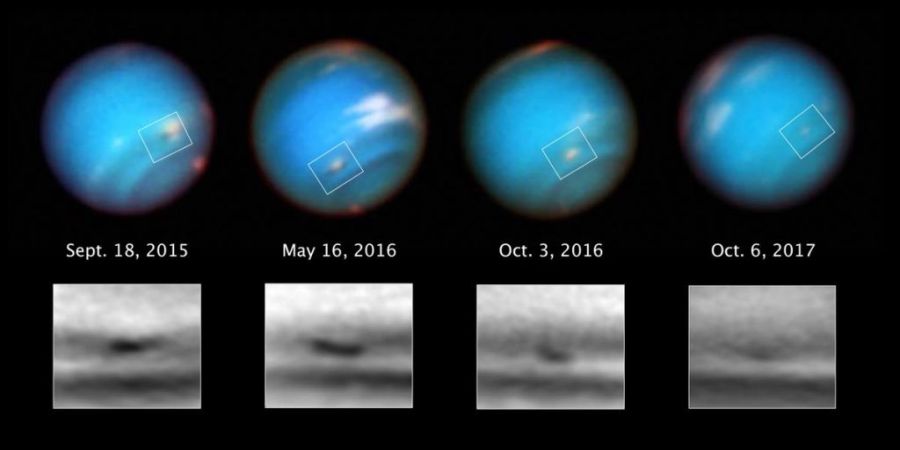was the first spacecraft to capture images of the giant storms in Neptune's atmosphere. Before then, little was known about the deep winds cycling through Neptune's atmosphere. But Hubble has been turning its sharp eye towards Neptune over the years to study these storms, and over the past couple of years, it's watched one enormous storm petering out of existence.