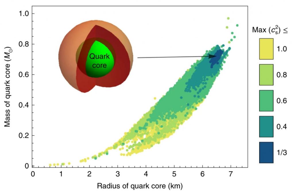Reference: Annala, Eemeli, et al. " Evidence for quark-matter cores in massive neutron stars." *Nature Physics* (2020): 1-4.