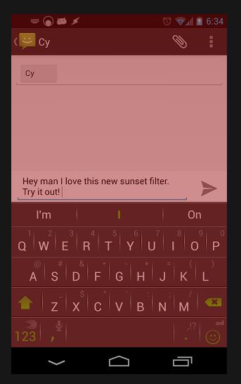 Sunset is a screen filter adds an additional layer of dimming color to help soothe your eyes during those extra dark hours. Perfect for astronomers/stargazers looking to preserve their night vision, late night smartphone users, and movie theater texters. Sunset goes darker than Android's brightness settings to provide your eyes with that extra layer of comfort.