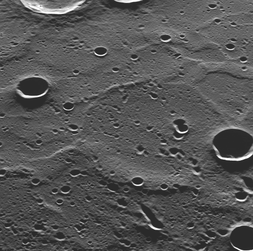 This is another region never seen before by spacecraft. "This is probably a plain deposit formed by undulating ridges and a host of secondary craters formed when a large crater was formed out of the field of view," Solomon said. "We're seeing that secondary craters (those formed from the ejecta of another crater) are very pervasive across the surface."