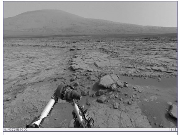 Above is a recent 3-D version of a panoramic view from NASA of the Curiosity Mars rover, made from dozens of images from both the left and right Navcams. But panoramic specialist John O'Connor has also put together a non-3-D interactive view of this scene of the rover and its surroundings. The images were taken during the 166th, 168th and 169th Martian days, or sols, of Curiosity's work on Mars, which equates to Jan. 23, 25 and 26, 2013 here on Earth.
