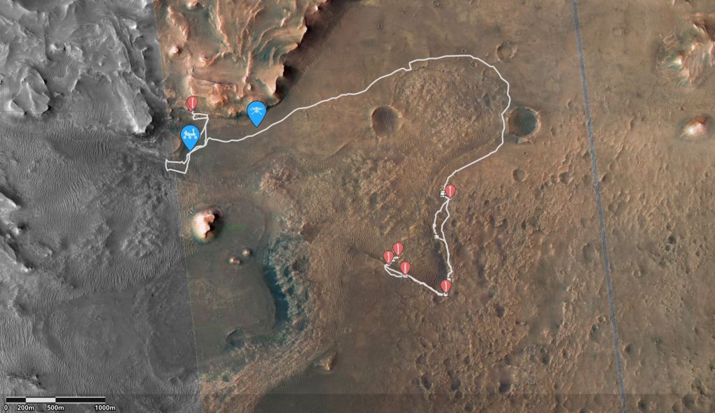 To date, the Perseverance rover has obtained thirteen samples from various locations within the crater (see map above). The rover will continue to gather samples for analysis, but those that will be left behind in a cache for future retrieval have all been collected. Said Williams: