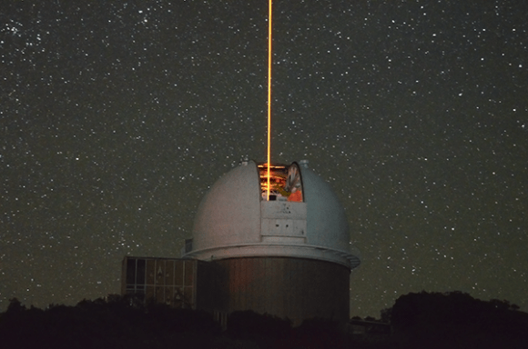 Higher-resolution images were obtained to ensure the transits were tied to exoplanets. The observations were acquired using the Robo-AO adaptive optics system on the 2.1-m telescope at the Kitt Peak National Observatory (image credit: