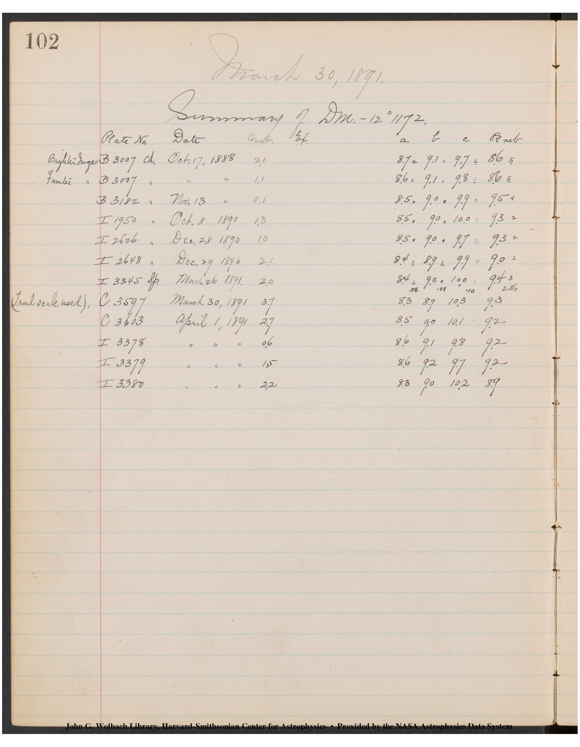 The log book of Williamina Fleming, including the March 26th, 1891 entry. Ironically, this particular plate has yet to make its way online. Credit: Harvard Observatory/Public Domain.