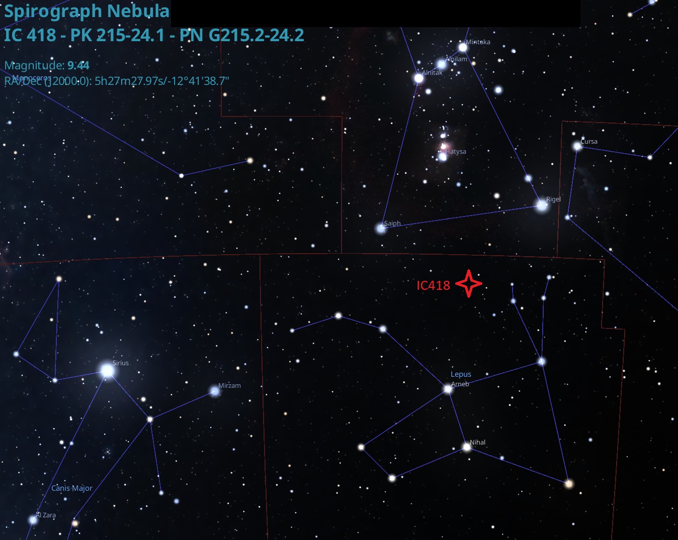 One such case is the planetary nebula IC418. Located in the constellation Lepus the Hare, this is also sometimes referred to as the ‘Spirograph Nebula,’ due to its interlocked looping structure.