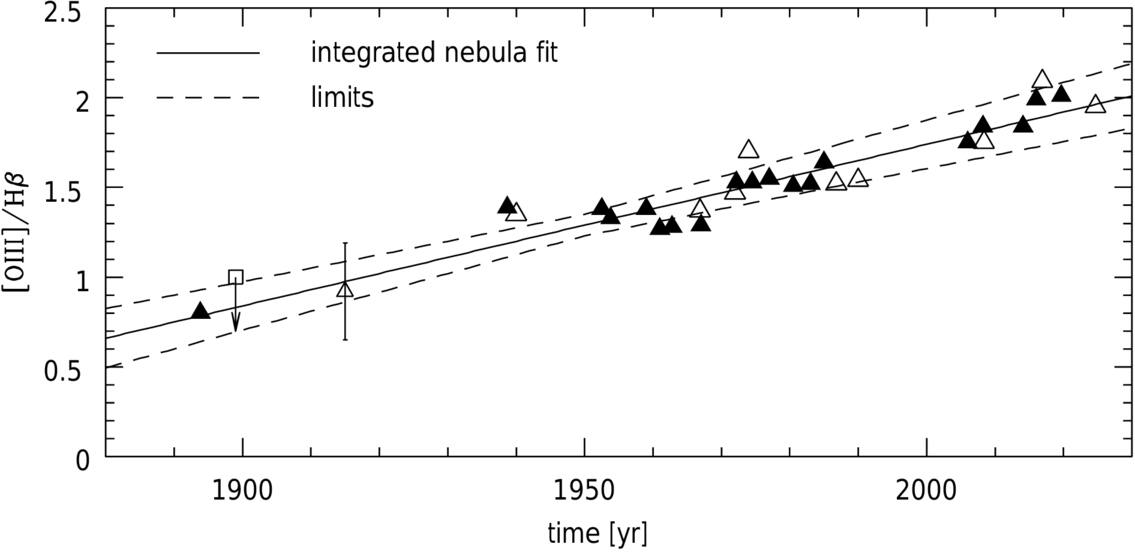 "The oldest data we used is from 1893, when the first spectrum was observed by (William W.) Campbell," Albert Zijlstra (University of Manchester) told *Universe Today*. "It was done by naked eye but described well enough that we could use it for our study."