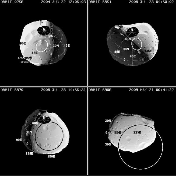 [caption id="attachment_74075" align="aligncenter" width="580" caption="Spatial locations of TES and observations of Phobos used for the compositional analysis. Credit: Giuranna and Rosenblatt"]