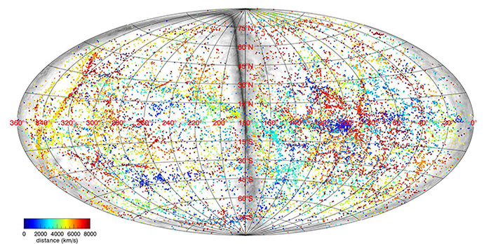 have been working to map both visible and dark matter densities around our Milky Way galaxy up to a distance of 300 million light-years, and they've now released this new video map which shows the motions of structures of the nearby Universe in greater detail than ever before.