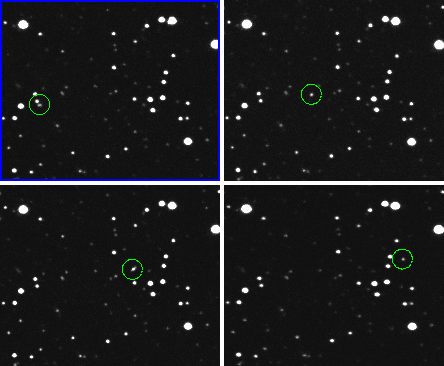 In our article about Gibbs' earlier discovery, he noted that when astronomers look through telescopes, asteroids don't look much different from stars – they are just points of light. But asteroids are points of light which are moving; however they are moving slow enough that to detect the motion, astronomers take a series of images, usually four images spaced 10-12 minutes apart.