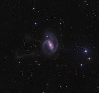 NGC1097 belongs a special class of galaxies called Seyfert - those that produce a specific type of spectrum and are thought to contain active galactic nuclei with super massive black holes. What makes this galaxy even more interesting is the very faint optical "jets" that may be the remnants of a smaller galaxy interaction many years ago.