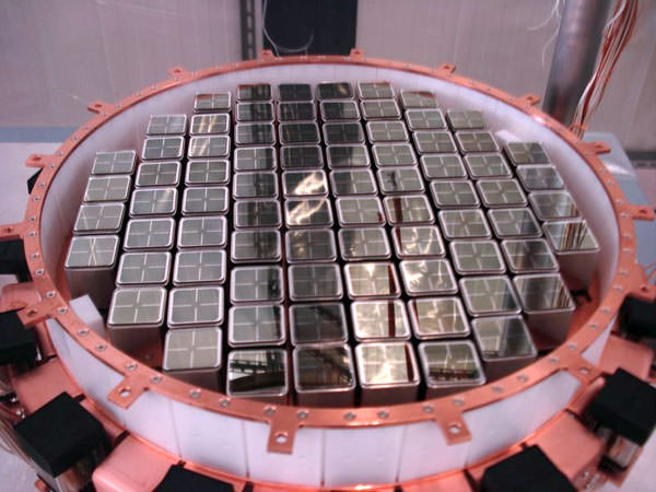 The extremely sensitive XENON100 detector is buried beneath the Gran Sasso mountain in central Italy, shielding it from cosmic radiation so it hopefully can detect WIMPS, hypothetical particles that might be heavier than atomic nuclei, and the most popular candidate for what Dark Matter might be made of. The detector consists of 62 kg of liquid xenon contained within a heavily shielded tank. If a WIMP would enter the detector, it should interact with the xenon nuclei to generate light and electric signals – which would be a kind of "You Have Won!" indicator.