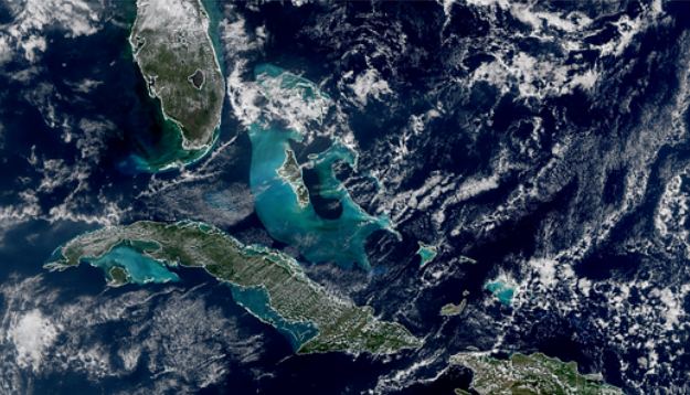 "The turquoise colour that's visible around Cuba and the Bahamas in the bottom-left image above comes from sediment in the shallow waters around the continental shelf," said NOAA's Dr. Satya Kalluri, Joint Polar Satellite System program scientist. Sediment around continental shelves is called neritic sediment. It's carried from land into the ocean by wind, rivers, flowing ice, and other processes. (Obviously, not by ice in the Caribbean. Please don't email me.)