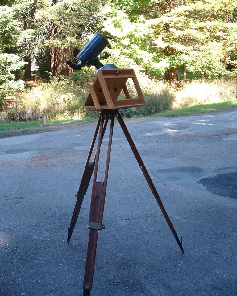 A home-made equatorial wedge used with an off-the-shelf telescope, just one of the ways you can improve your telescope experiences. Credit: Dale Jacobs