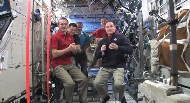 With the Canadian national anthem playing, astronaut Chris Hadfield accepted the "keys" to the International Space Station from outgoing Expedition 34 commander Kevin Ford, as Hadfield became the first Canadian commander of the space station.