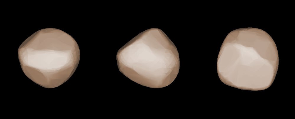 Hebe orbits in the main asteroid belt between Mars and Jupiter with an average distance from the Sun of 225 million miles. It spins on its axis once every 7.3 hours. Credit: Wikipedia