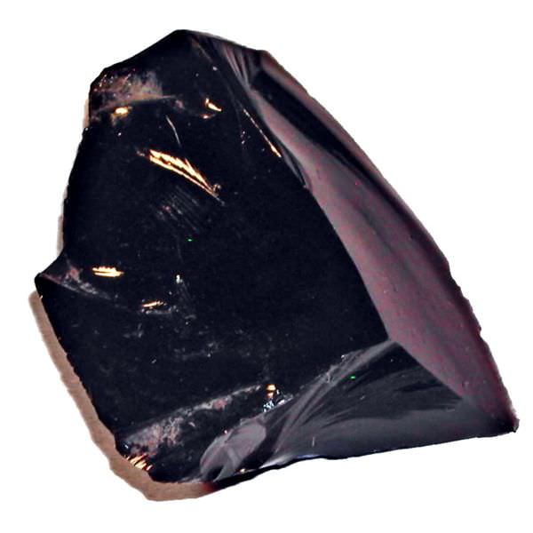 In order to get obsidian, the lava erupting from a volcano needs to cool so fast that crystals in the rock don't have a chance to form. You'll often get obsidian when lava from a volcano is pouring into a lake or ocean and cools quickly. And glass, unlike crystals, has no regular structure and can therefore fracture in long curved shapes. Obsidian consists mostly of silicon dioxide (70% or more) - that's the same as window glass. The black color comes from minerals dispersed in the glass, like magnetite or hematite.