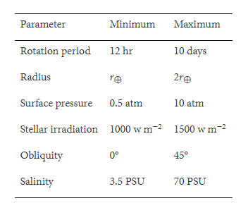 The authors write: "As a first step, we use a general circulation model (GCM) to quantify the sensitivity of global upwelling and other biogeochemically significant oceanographic quantities to a broad range of planetary parameters." Their modeling takes into account a thermodynamic–dynamic sea ice model, and a versatile radiative transfer scheme. It also simulated 40 vertical layers in the atmosphere and 10 layers in the ocean.
