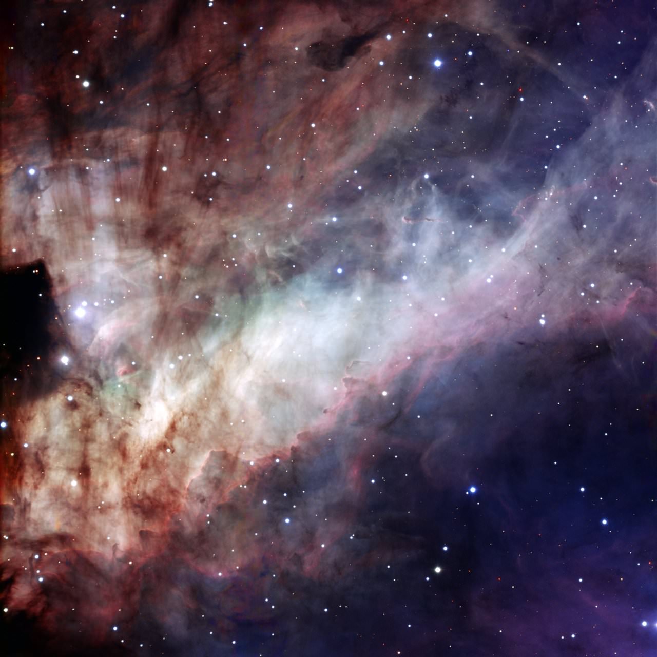 The Omega Nebula, a stellar nursery 5500 light-years away towards the constellation Sagittarius (the Archer), is looking positively dashing in this new image released today by the European Organisation for Astronomical Research in the Southern Hemisphere (ESO). The subtle color shades across the three-color composite image comes from the presence of different gases (mostly hydrogen, but also oxygen, nitrogen and sulfur) that are glowing under the fierce ultraviolet light radiated by hot young stars.
