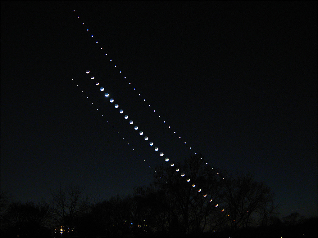 from Toronto, Canada captured it -- over two dozen times. This composite image was created from 31 frames taken five minutes apart, each with an exposure time of 5 seconds. Thanks to Rick for creating this image "just for the gang at UT." Check out his earlier image of the